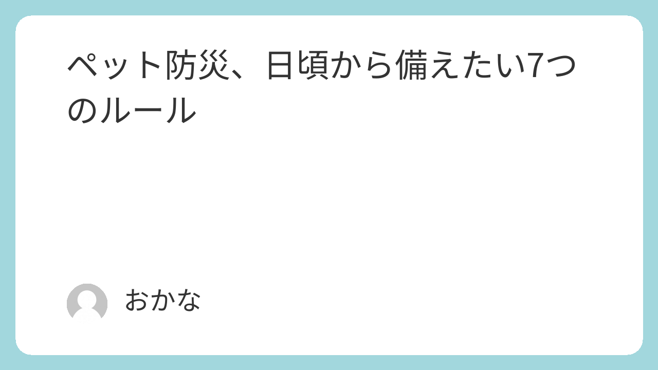 ペットを飼っている方、避難をすることになった際の対処方法や持ち物は準備されているのでしょうか。日頃から備えて、いざというときに自分とペットの身を守れるようにしましょう。
