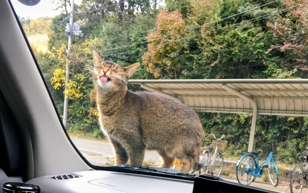 しかし、突如現れたみーちゃんはびっくりするほどに人慣れしていて、毛並みもよく、どこかの家で飼われているのかな?と思っていました。数日間、ばったり会うと少し遊んで過ごす仲になり、私と娘が住むアパートのドア前で待っていたり、私の車が駐車場に着くのを待っていて、車庫入れが終わったタイミングで車に飛び乗ってきたりと可愛らしい素振りを見せてくれるようになります。